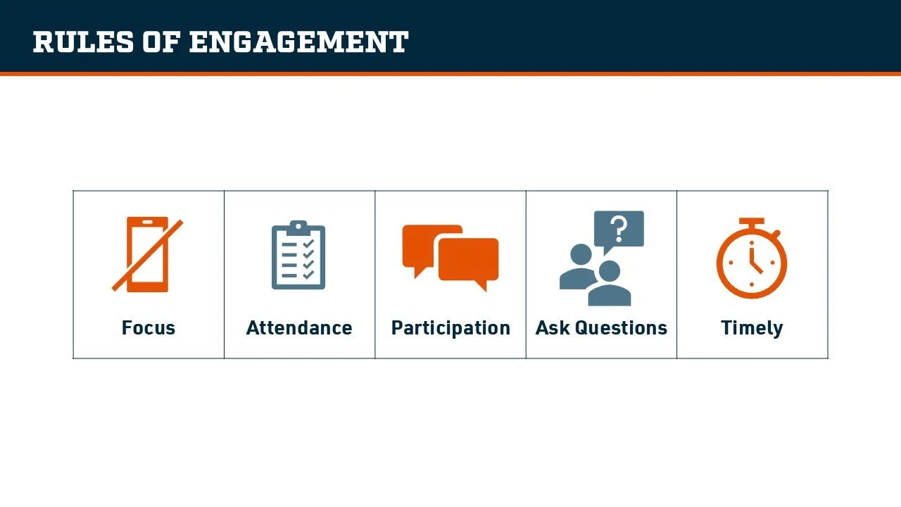 This course utilizes lecture, discussion, self-reflection, activities, video, illustration, examples, practice, and guided notes to encourage engagement, hold attention, and cement learning. Audience participation is an expectation. Each of the activities was intentionally selected to add to and enhance the overall learning experience of each team member. They are simple but very effective.