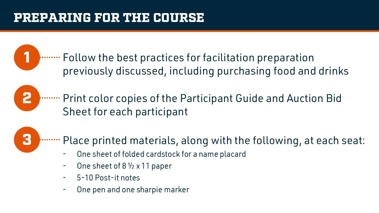 The participant guide was not intended to be a slide-for-slide reference, but rather a guided note taking tool to aid learning. It includes focused material for future reference, next steps, additional learning opportunities, a facilitator practice checklist, and a facilitator feedback form.